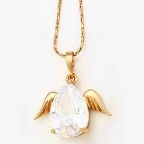 Кулон с крыльями с крупным белым фианитом оптом, натуральная позолота модель 31964