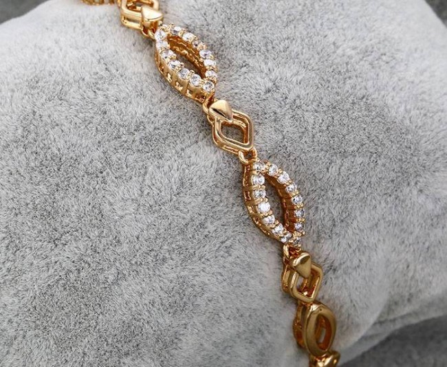 Браслет с белыми фианитами оптом, натуральная позолота модель 72957