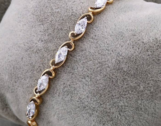 Браслет с белыми фианитами оптом, натуральная позолота модель 73145