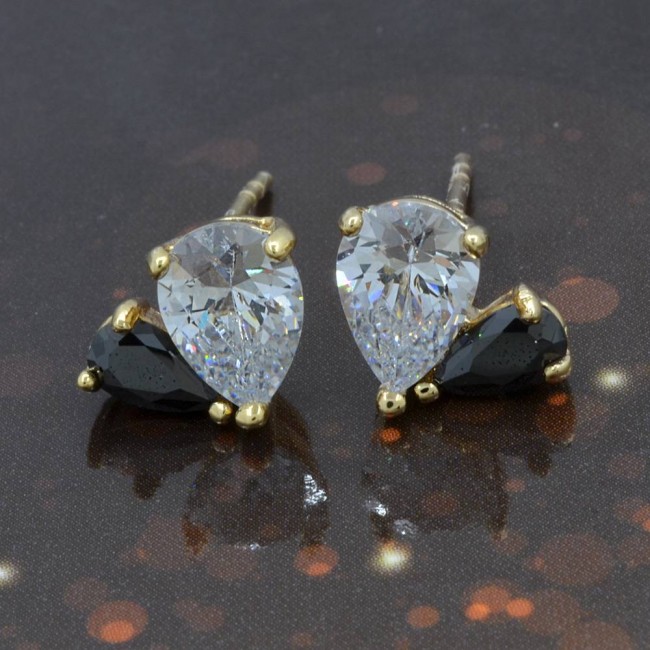 Бесподобные серьги-гвоздики с фианитами 18К 10-9013-черно-белый