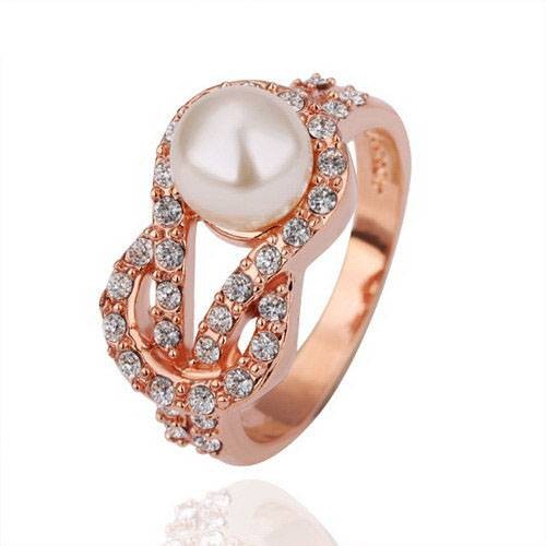 Кольцо с белыми фианитами и жемчужиной оптом, модель 0131