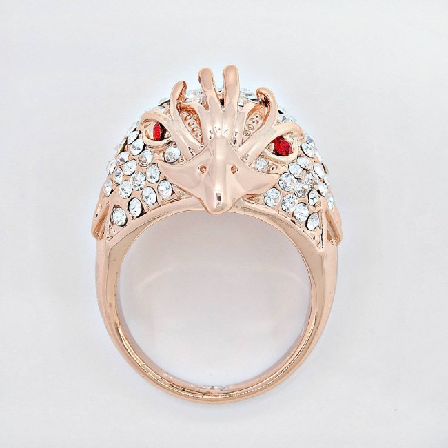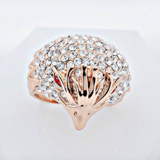 Кольцо в форме орла с белыми и красными фианитами оптом, модель 0201
