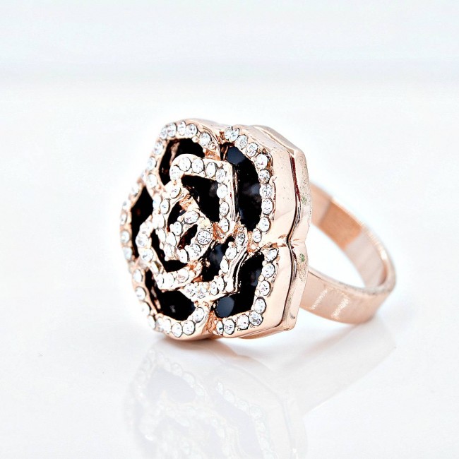 Кольцо в форме цветка с белыми фианитами оптом, модель 0353