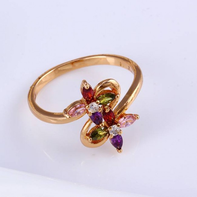 Кольцо оптом, фианит мультиколор темный, модель 11793.