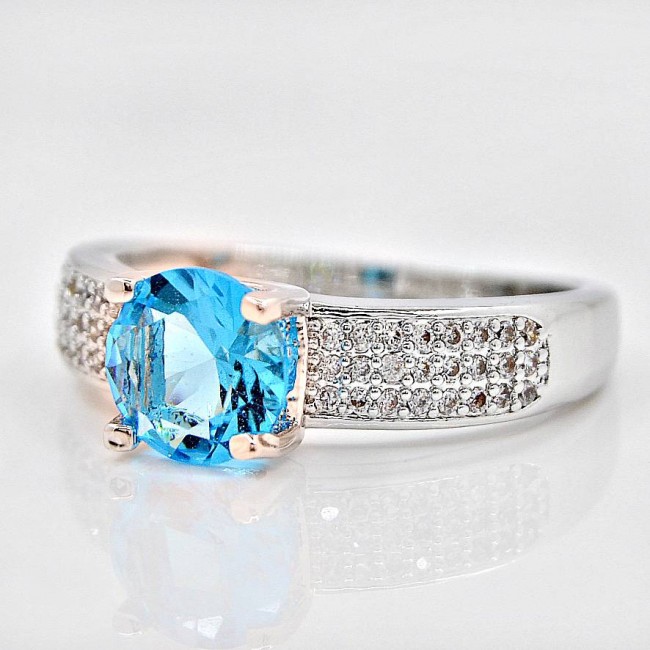 Кольцо с голубым и белыми фианитами
