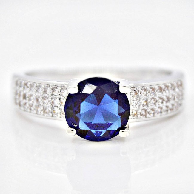 Кольцо с синим и белыми фианитами