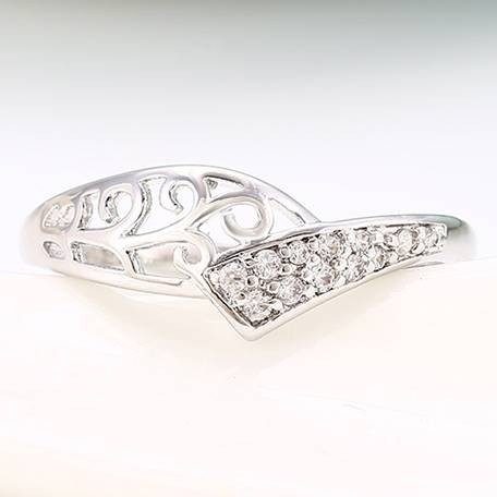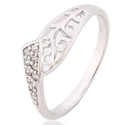 Ажурное кольцо в белой позолоте 12855