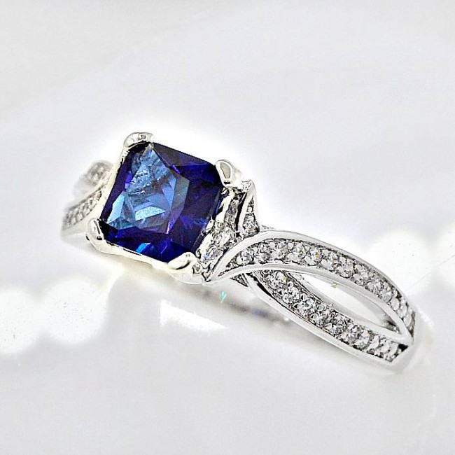 Кольцо с синим фианитом