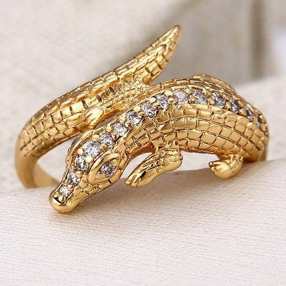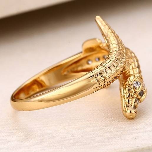 Экстравагантное и эффектное кольцо в форме крокодила с фианитами 13018