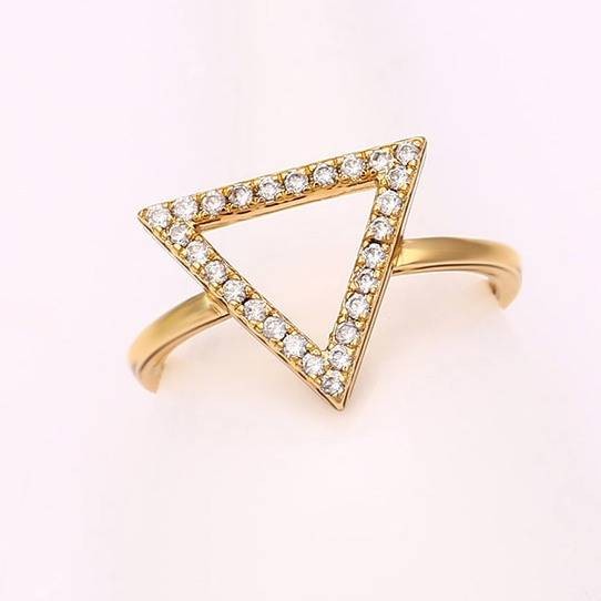 Кольцо в форме треугольника с мелкими белыми фианитами оптом, модель 13223