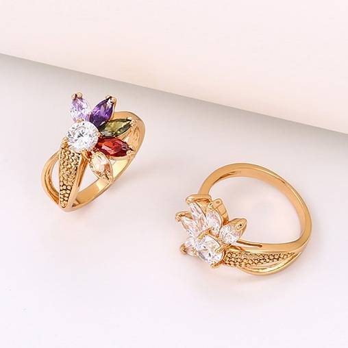 Роскошное кольцо с фианитами на выбор (белый/мультиколор темный) оптом, модель 13270