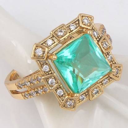 Кольцо с фианитом цвета бирюзы