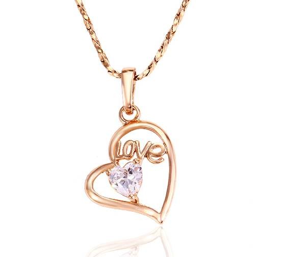 Кулон в форме сердца с белым фианитом оптом, натуральная позолота модель 31820