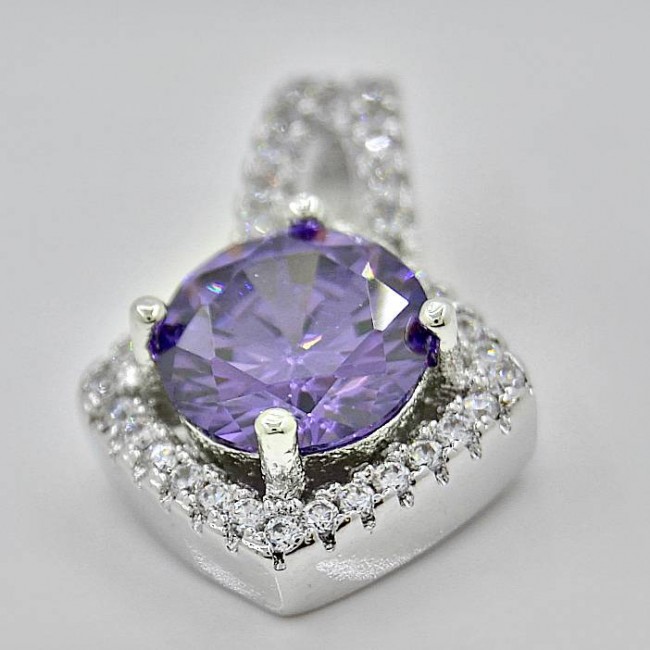 Кулон c фиолетовым и белыми фианитами