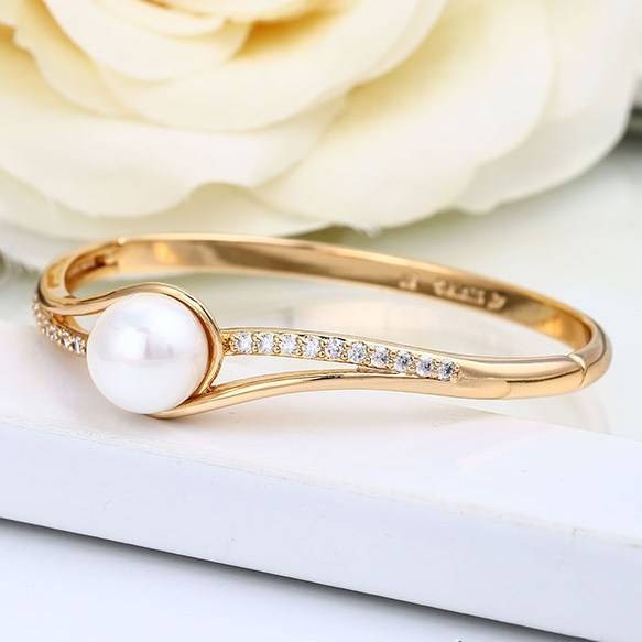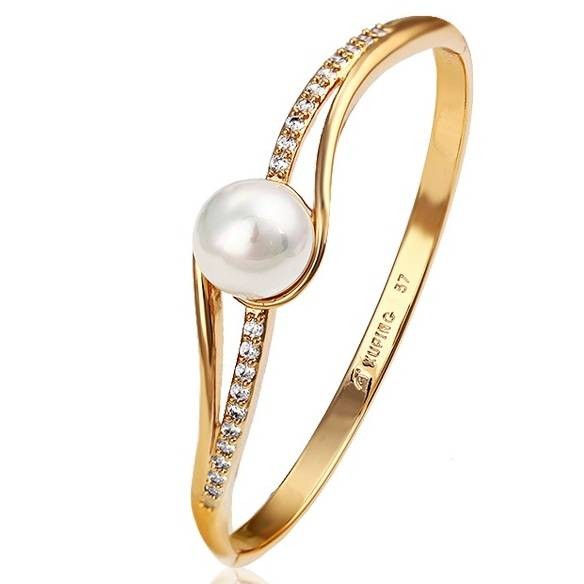 Браслет с жемчужиной и белыми фианитами модель 51205