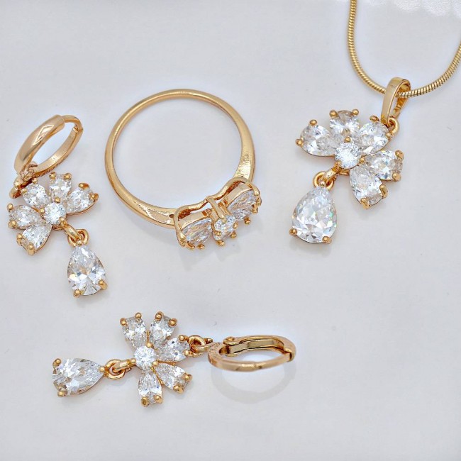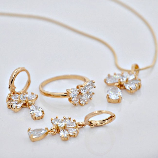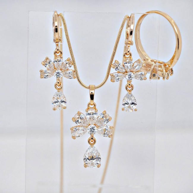 Комплект из сережек, цепочки, кулона и кольца, модель 61524-белый