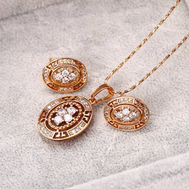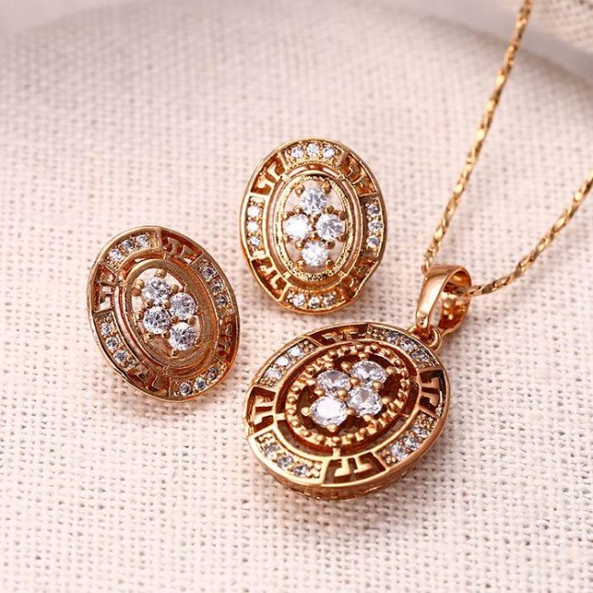 Комплект из кулона и сережек с белыми фианитами оптом, модель 62165