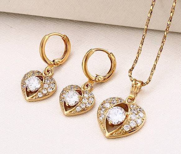 Комплект из сережек и кулона оптом, натуральная позолота модель 62819