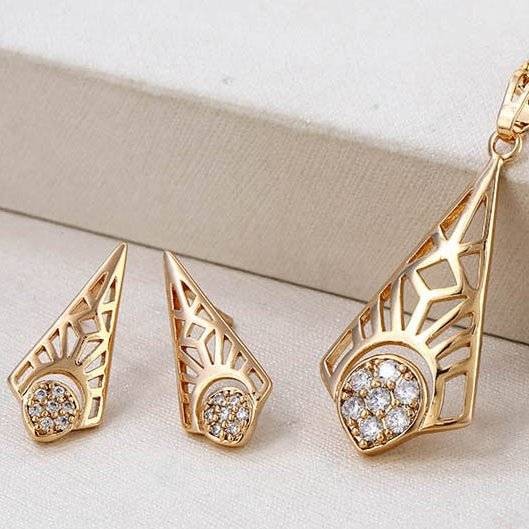 Комплект с серьгами и кулоном оптом, натуральная позолота модель 62972