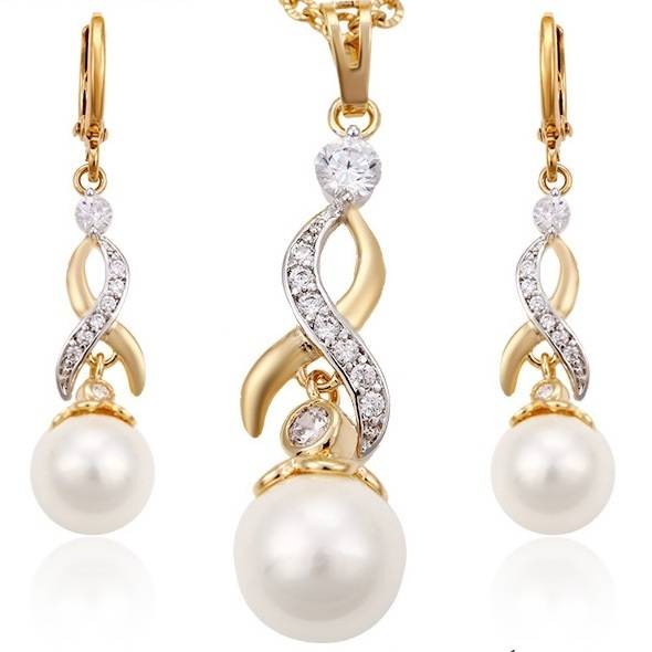 Роскошный комплект с жемчугом и фианитами 63143