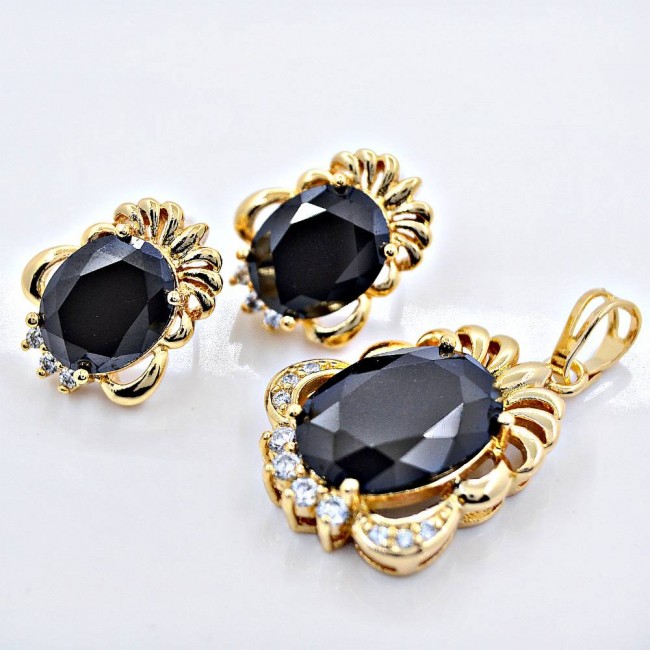 Яркий комплект с фианитами 18К 63228-черный