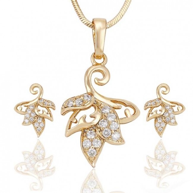 Неповторимый комплект в форме листьев с фианитами оптом 63916