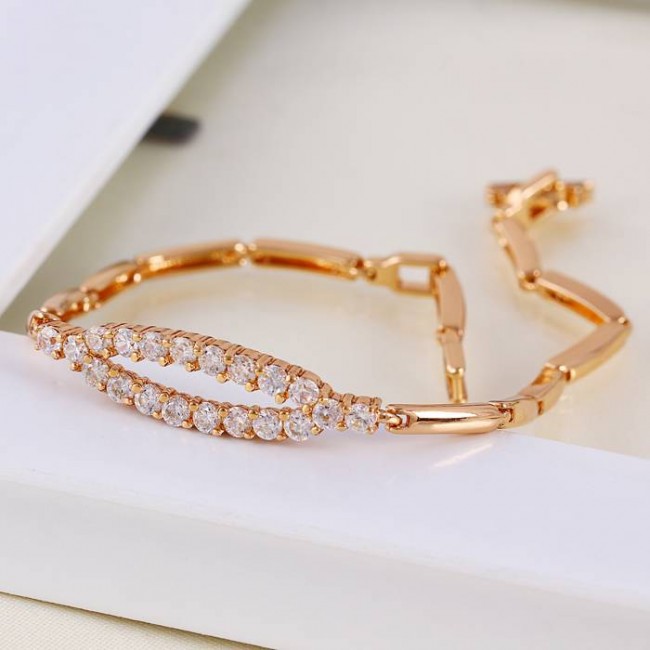 Браслет с белыми фианитами оптом, натуральная позолота модель 71443