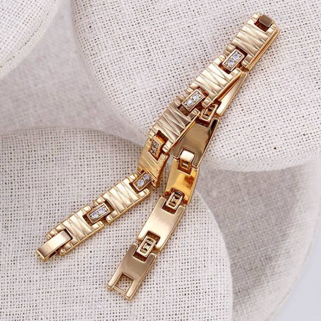 Браслет с белыми фианитами оптом, натуральная позолота модель 72689