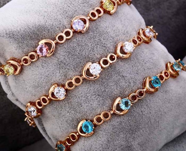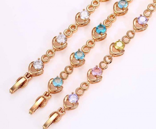 Браслет с белыми фианитами оптом, натуральная позолота модель 72723