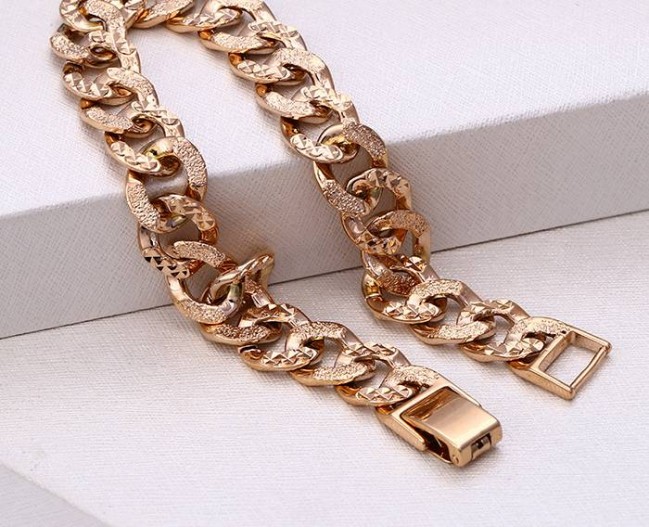 Браслет с крупной цепью оптом, натуральная позолота модель 72791