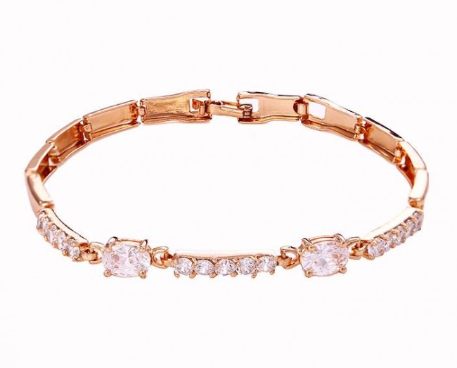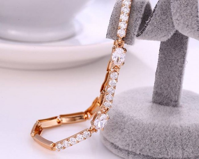 Браслет с белыми фианитами оптом, натуральная позолота модель 72838