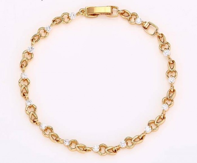 Браслет с белыми фианитами оптом, натуральная позолота модель 72970