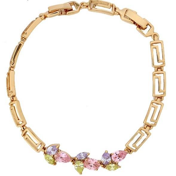 Браслет с разноцветными фианитами оптом, натуральная позолота модель 73090