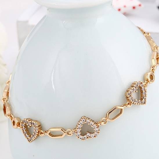 Браслет в форме сердец с белыми фианитами оптом, натуральная позолота модель 73148