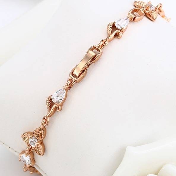 Симпатичный браслет в форме цветков с белыми фианитами оптом, натуральная позолота модель 73222