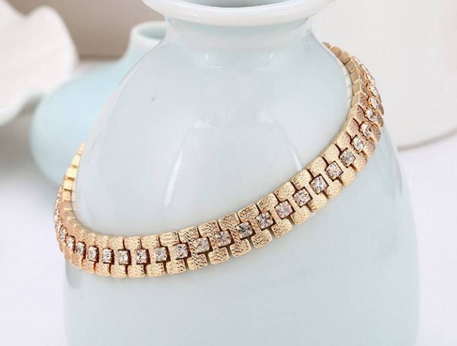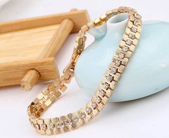 Массивный браслет с белыми фианитами оптом, натуральная позолота модель 73280