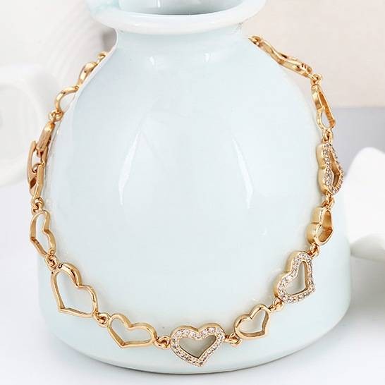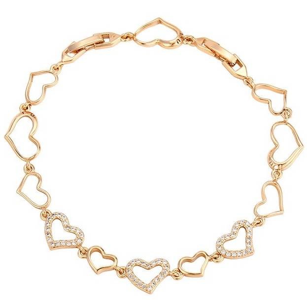 Браслет в форме сердец с белыми фианитами оптом, натуральная позолота модель 73285