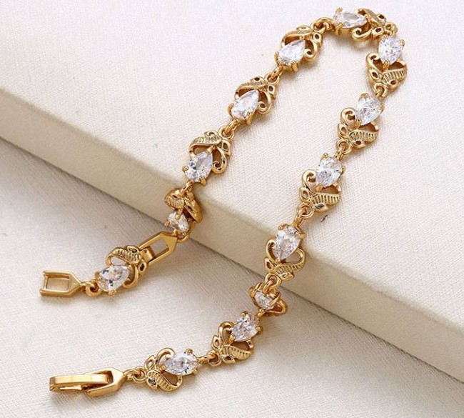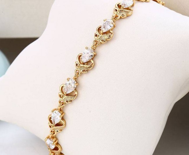 Браслет с белыми фианитами оптом, натуральная позолота модель 73317