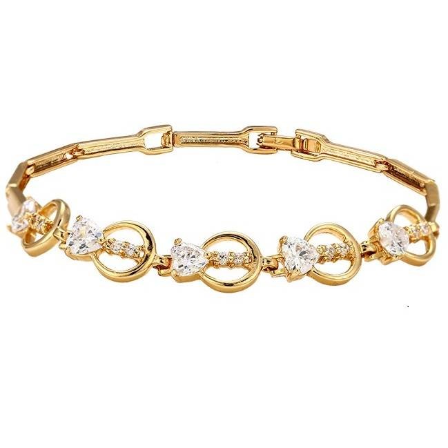 Красивый браслет с белыми фианитами оптом, натуральная позолота модель 73321