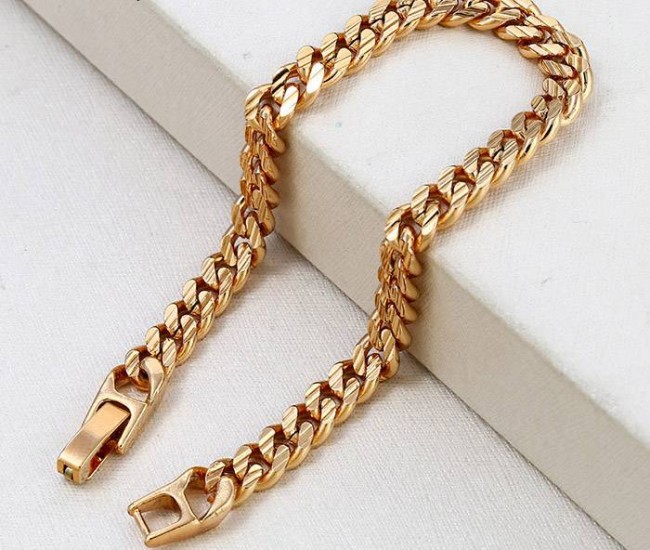 Браслет с крупными звеньями оптом, натуральная позолота модель 73410