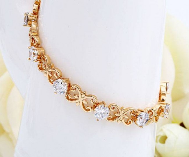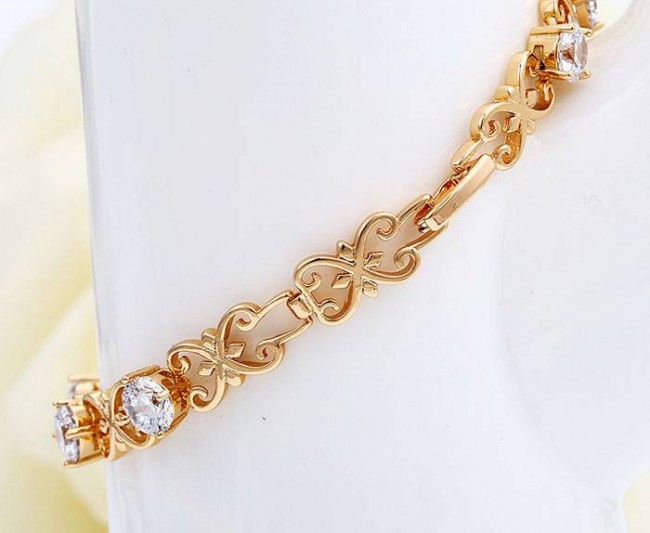 Браслет с белыми фианитами оптом, натуральная позолота модель 73507