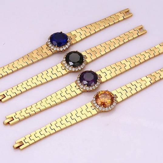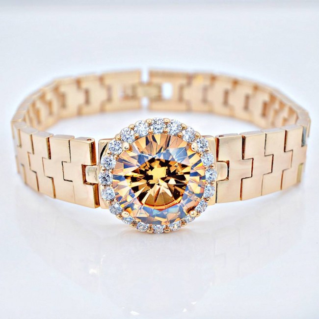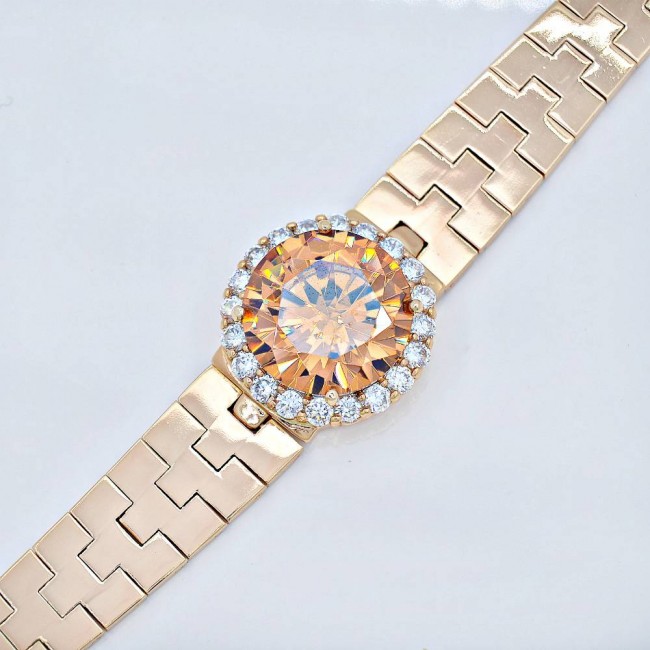 Красивый браслет с фианитами цвета шампань оптом, натуральная позолота модель 73549-шампань