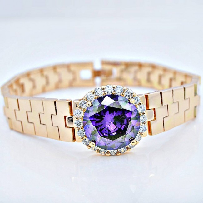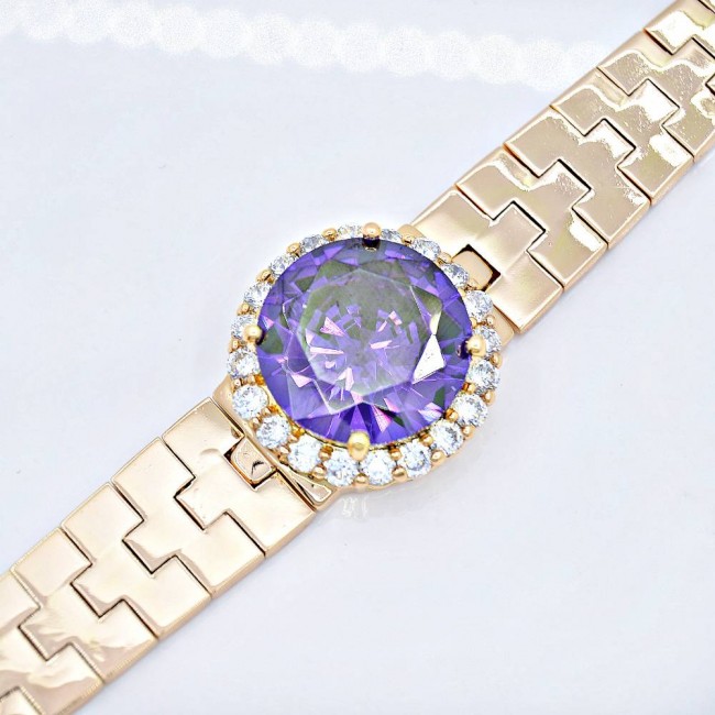 Красивый браслет с фиолетовыми фианитами оптом, натуральная позолота модель 73549-фиолетовый