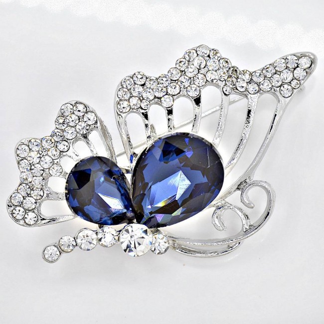 Брошь в виде бабочки с синими и белыми фианитами