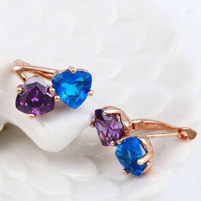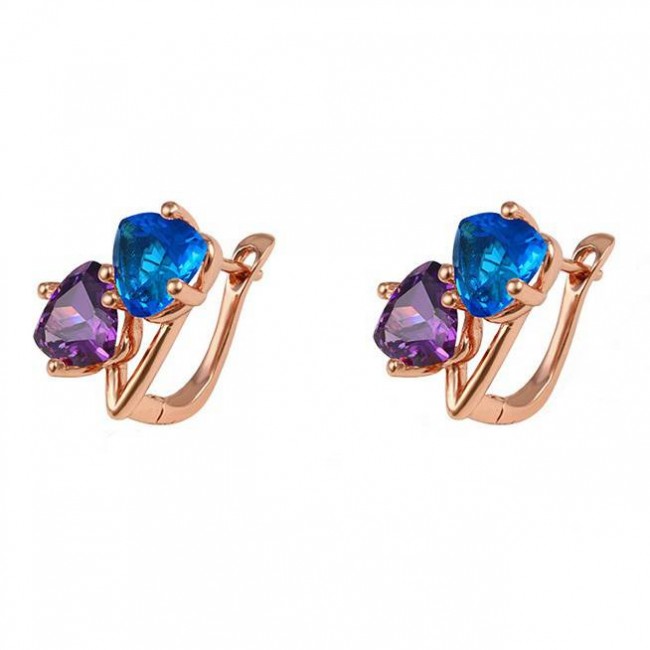 Серьги с голубыми и фиолетовыми фианитами