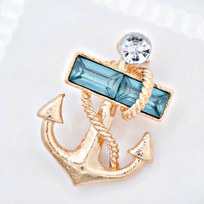 Оригинальная брошь в форме якоря с белыми и голубыми фианитами 934605