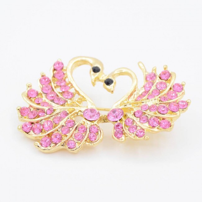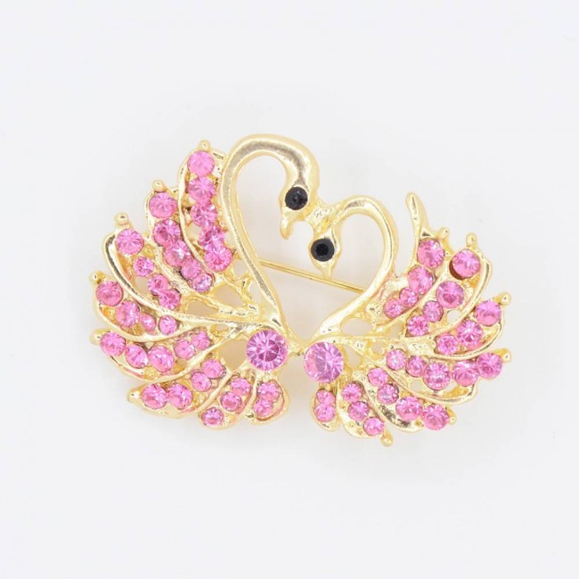 Брошь "Лебеди" с фианитами оптом А2-076-004