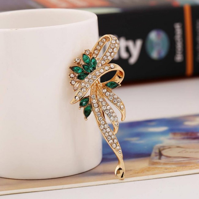 Брошь с зелеными и белыми фианитами