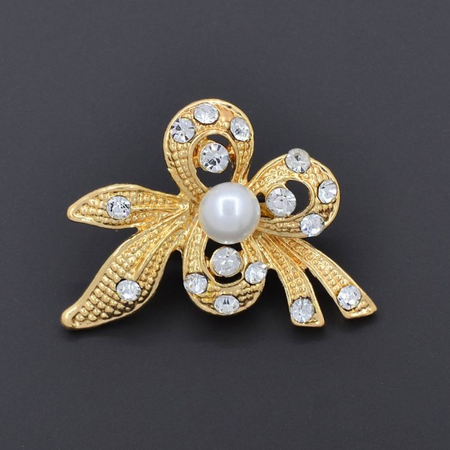 Бесподобная брошь с фианитами и жемчугом 302-17