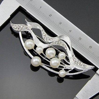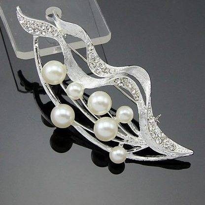 Бесподобная брошь с фианитами и жемчугом оптом RE-5278